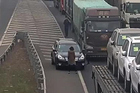 山东滨莱高速,一小车在施工管制拥堵路段,倒车下匝道,随车女子竟下车边蹦边跳,用身体遮挡号牌。最终,该司机将因此被处罚款200元记12分。
