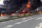 恐怖车祸现场!油罐车撞货车