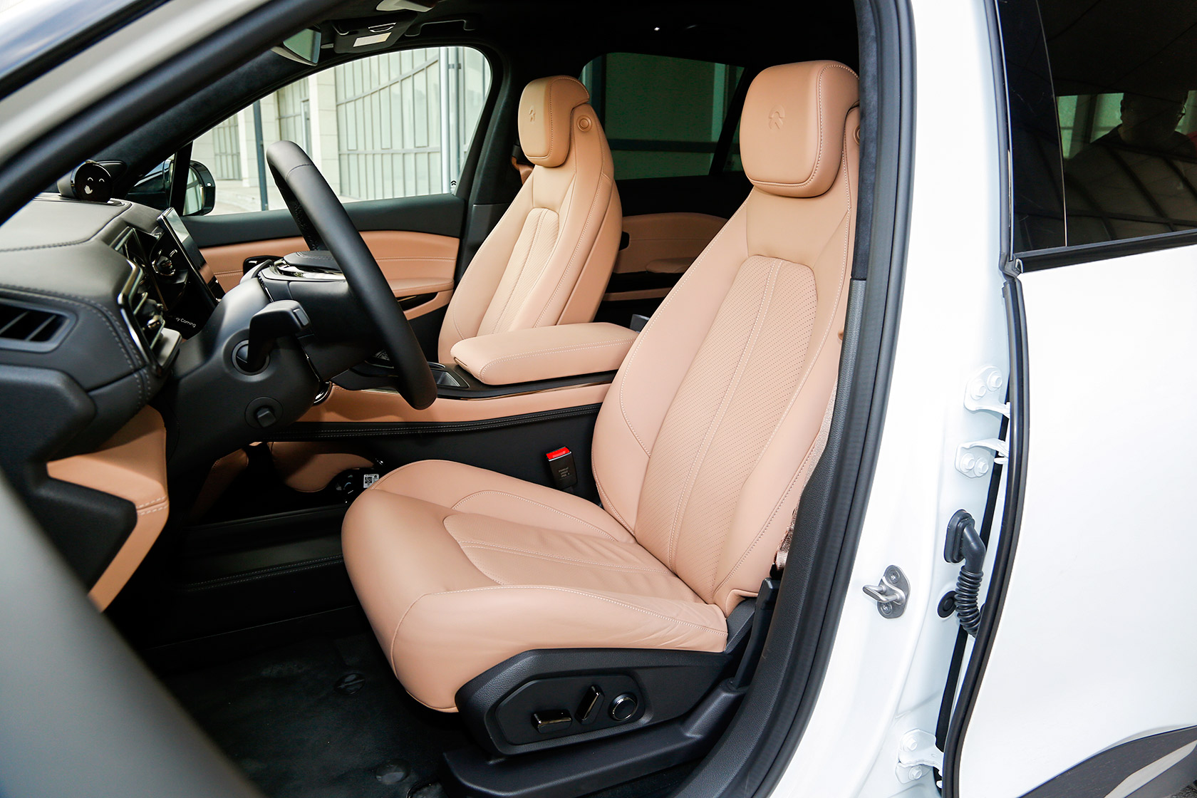 制动踏板的阻尼比较松软,但是制动力非常强,前Brembo 4活塞卡钳+305x32mm通风刹车盘最大可产生1g的制动力,制动距离仅33.9m,加上比较强的能量回收制动,刚上手时制动脚力需要适应一下。