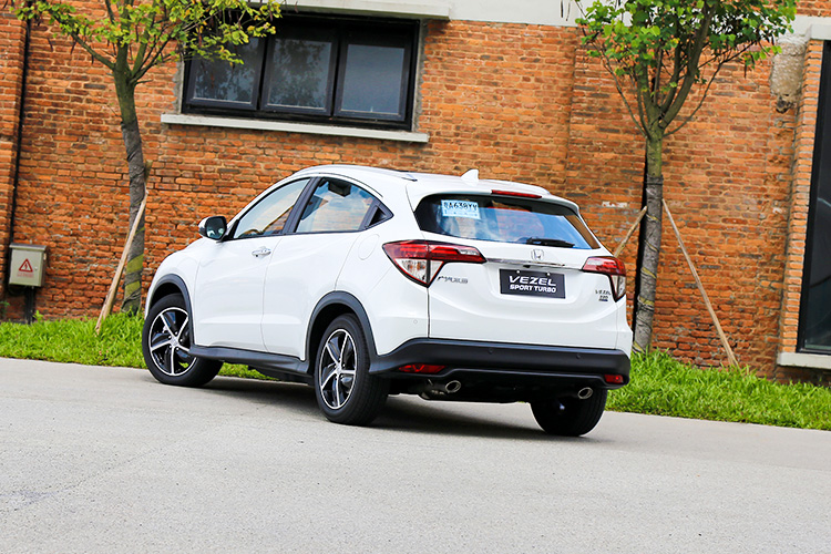 新款缤智的车头采用本田最新的家族设计,粗壮的熏黑镀铬连接着两侧的羽翼式全LED大灯,加大的中网造型更具冲击力。此外,新车还加入了SPORT包围,不再采用亮灰色涂装,而是才用了主流SUV更显粗犷的亚光黑配色。双出排气管布局在小型SUV上并不多见,很有冲击力,不过位置显得十分“羞涩”,要比包围短了不少。