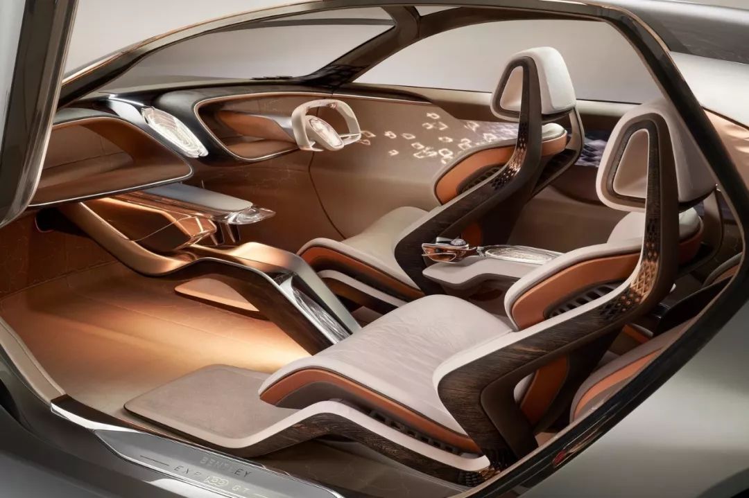 为庆祝宾利品牌诞生100周年,宾利近日发布了EXP 100 GT概念车,新车诠释了未来超豪华GT跑车的理念。新车由四台电机驱动,搭载“下一代牵引力驱动系统”,电池能量密度是现有技术的五倍,最大续航700公里,整套系统最大扭矩1500牛·米,0-100公里/时加速2.5秒。车身采用轻量化的铝材和碳纤维打造,车身长度达到5.8米,宽度为2.4米。