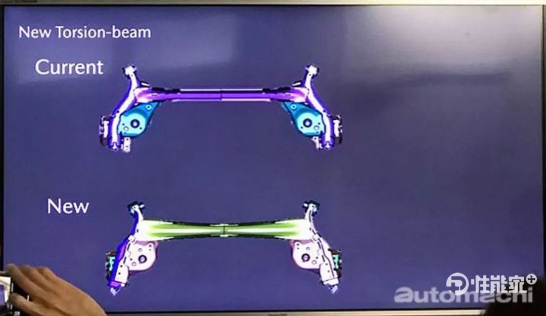 原厂工程师表示多连杆悬架在转弯的时候回馈到车身的反应会出现延迟,而这个全新设计带专利的扭力梁悬架则不会,而这就是新一代 马自达3采用扭力梁悬架的主要原因。