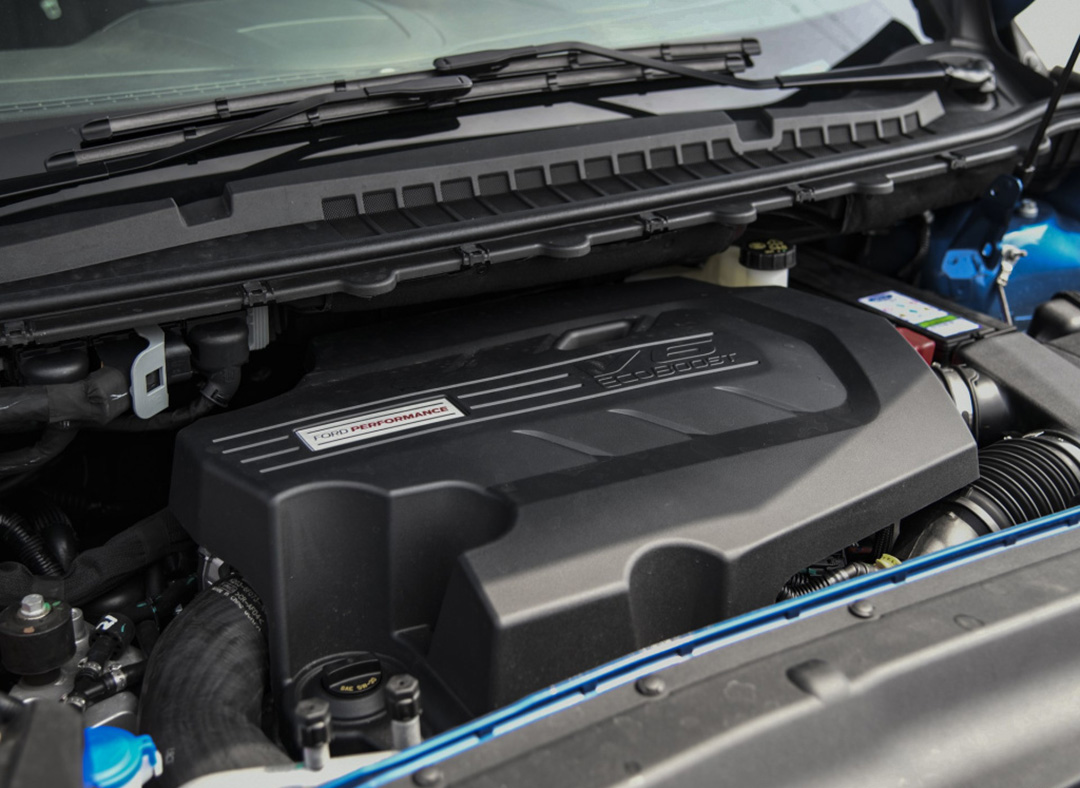 除了看得见的外观、内饰的性能化升级,ST的性能提升才是精髓所在。动力上新锐界ST搭载的是2.7L双涡轮增压V6发动机并匹配8速手自一体变速箱,该发动机最大功率322马力,最大扭矩500牛·米,是目前福特在华销售车型中动力最强的2.7T机型,对比普通版本,功率与扭矩的提升十分显著。
