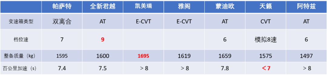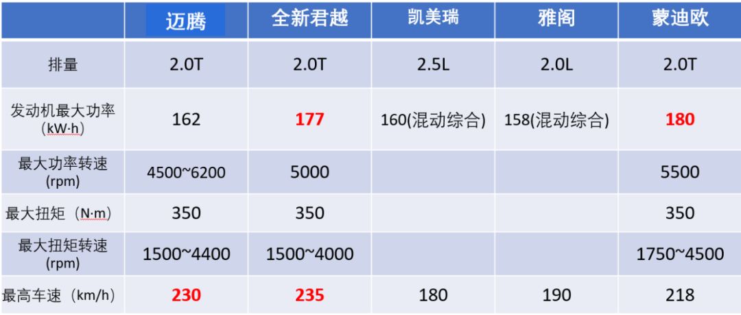 中高级轿车市场,消费者对于驱动系统的动力性需求也是随着汽车技术的发展不断在提升。在百公里加速成绩这个硬指标上,在国五阶段,蒙迪欧等车型率先在这个级别车型上打开8s大关时,君越和迈腾等后换代车型又进一步将这个成绩提升到7s,把这个级别车型的加速体验提升到了一个新的水平。