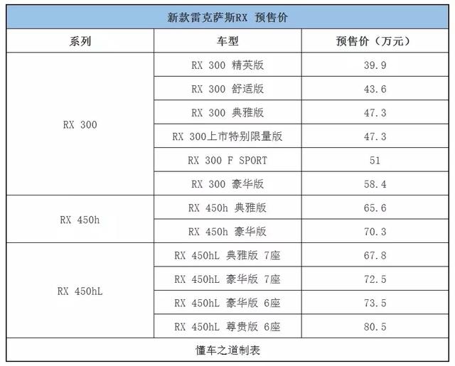 近日,《懂车之道》从雷克萨斯官方获悉,新款雷克萨斯RX将于成都车展正式上市,此前官方公布的预售价格为39.90-80.50万元,新款雷克萨斯RX的外观和内饰均做了改变,新款雷克萨斯RX将继续搭载2.0T发动机及3.5L混合动力系统。此外,还首次加入了加长版车型RX 450hL。
