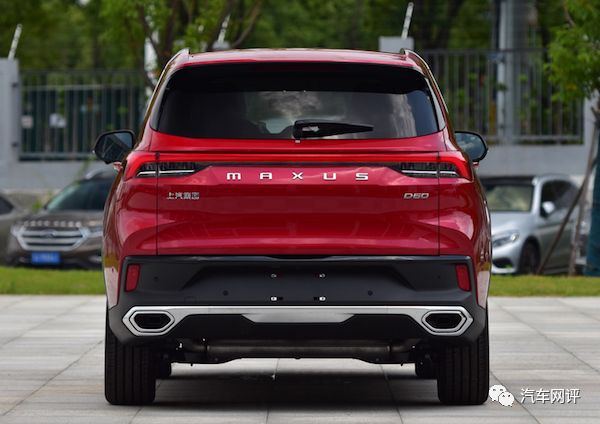 尾部则设计方面贯穿式LED尾灯是当下新车型必不可少的设计元素,灯组内部点亮后呈现的光感十分亮眼,具有很高的辨识度。灯组下方则是上汽大通MAXUS英文的Logo标识,用以提升高级感;下方采用双排气设计,也有镀铬漆面处理。