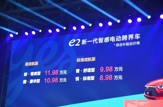 9月2日,比亚迪e系列迎来第二款产品——全新e2,该车补贴后售价区间为8.98万-11.98万元。此前的预售价区间为10-13万,新车定位纯电动两厢紧凑型车,将提供305km和405km两种续航版本。