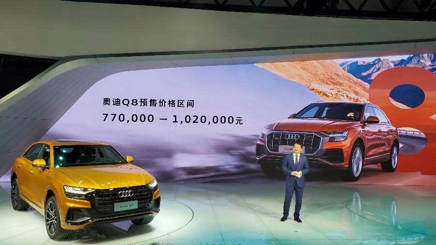 【有车以后 成都车展】9月5日,奥迪官方在2019成都车展上公布了全新奥迪旗舰SUV车型Q8在中国市场的预售价格,其预售价区间为77-102万元。奥迪Q8 (配置|询价)定位中大型SUV,采用和兰博基尼Urus、宾利添越 (配置|询价)等车型相同的MLB evo平台开发,与Q7 (配置|询价)形成市场差异化互补。