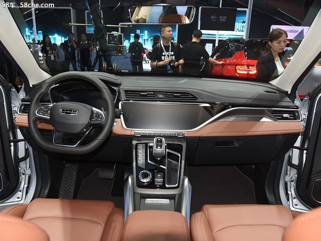 5.新车内饰变化非常醒目,博越PRO车内采用了吉利全新的设计风格,全新的三幅式平底方向盘风格更加年轻运动,同时方向盘中央的Logo同样采用了黑化处理,。