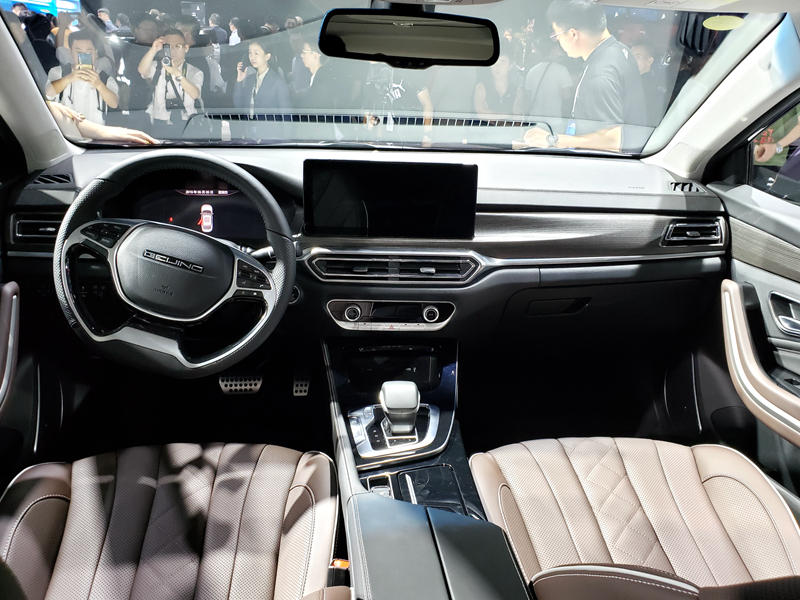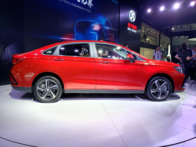 新车的外观基于北汽燃油绅宝智道打造而来,前脸采用北汽新能源家族式前脸,左右双“C”字型的日间行车灯极具辨识度。新车尾部虽然没有用贯穿式尾灯,但在左右尾灯之间加入了一条镀铬饰条,一定程度上拉宽了尾部的视觉效果。值得一提的是,新车前后车标采用“BEI JING”的字母 LOGO。