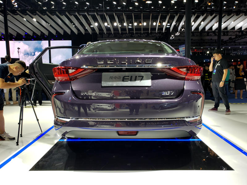 除了EU5上市之外,北汽新能源EU7 (配置|询价) 也一同亮相。不过EU7并没有在此次车展上上市,而要等到 10 月份的北汽战略发布会上发布。