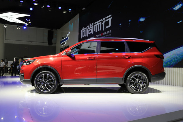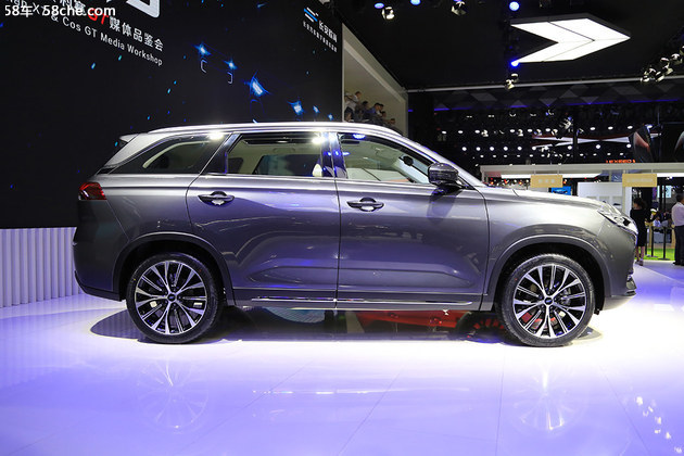 侧面部分,由于科赛GT拥有着4880mm的车长和2800mm的轴距,所以整车给人的柑橘会比较修长。19英寸多辐式双色轮圈看上去也更加运动,轮胎则采用来自邓禄普的225/55 R19轮胎。