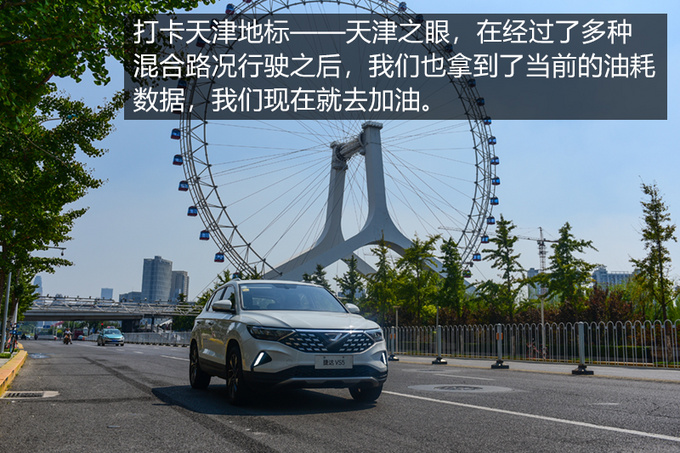 在将近20公里东三环国贸附近拥堵路段下,捷达VS5最高油耗在6.9L/100KM左右,但随着我们车速的上升,逐渐平均油耗也开始下降,行驶至高速路段,我们车速会在100-120KM/H浮动,此时距离天津之眼还有30KM左右,即将进入市区路段,会有很多交通路口,以及小街小巷。