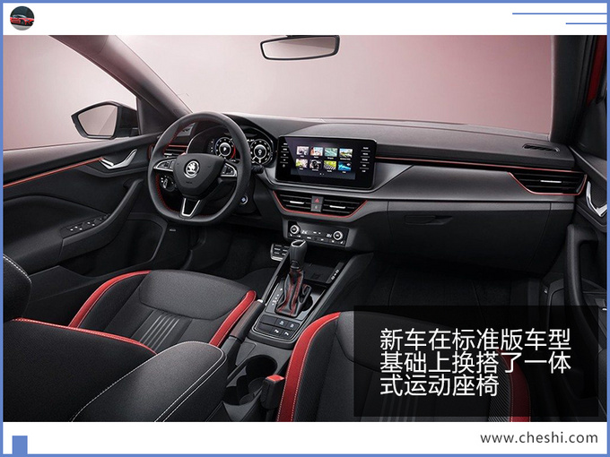 外观方面,斯柯达全新Scala Monte Carlo基于普通版车型打造,整体造型更为运动,黑色元素与红色车身的碰撞,进一步刺激视觉效果。新车前脸装配熏黑直瀑式进气格栅,灯组内部集成LED光源。车侧上方后视镜外壳由黑色元素装点,头顶上方配有全景天窗,车尾配有小型扰流板及扩散器。内饰配有多功能方向盘,座椅为多孔皮质材料拼接而成的一体式座椅。动力方面,新车或将搭载1.0T三缸或1.5T发动机,传动系统匹配6速手动或7速双离合变速箱。