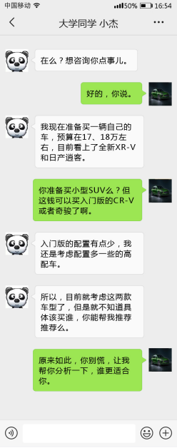 最近小编的大学同学来询问我,刚刚毕业的他准备买一辆属于自己的车,预算在17、18万元,和如今很多年轻消费者一样,对于他来说配置是买车时比较重视的一项,因此他准备购买高配的XR-V (配置|询价)或者逍客 (配置|询价),但是一直犹豫难以取舍。