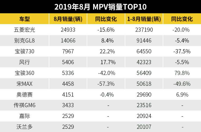 五菱宏光 (配置|询价)和别克GL8 (配置|询价)依旧位列第一、第二;