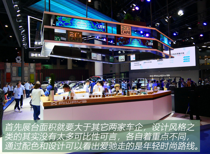 最后再来看下爱驰,作为一家智能电动车公司,爱驰汽车自创立以来一直走技术流派,至今已有MAS、GES两大新能源产品平台。相比上述两家车企可以说是十分安静,从2018年4月爱驰U5 ION官图发布官图伊始,一直低调行事,在营销方面同样也是“默不作声”,直至本届成都车展爱驰U5开启预售才将这个彩蛋引爆。为此,我们就来看看爱驰的展台如何。