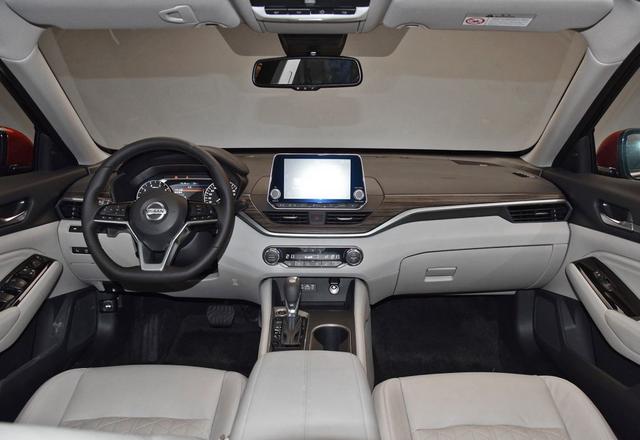 新天籁的内饰依然还是走简洁居家风格,主要以搪塑材质为主,辅以木纹和金属饰板装饰,比较显档次。中高配车型采用7英寸液晶屏+机械式指针结合的仪表盘,中间的液晶屏也可以显示多种行车信息。中高配车型配备8英寸悬浮式中控屏,搭载日产最新的车载系统,支持CarLife、GPS导航、导航路况显示、蓝牙、语音识别、车联网、OTA升级等。中控屏和空调面板均保留了实体按键,包括娱乐系统、空调温度和座椅功能都可以通过按键进行调节。