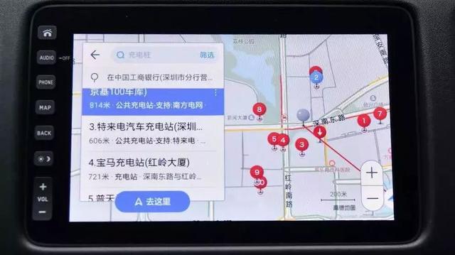 因为VE-1是电动车的缘故,内置的高德导航也增加了查找充电桩功能,并显示收费信息、充电桩个数等,相当方便。