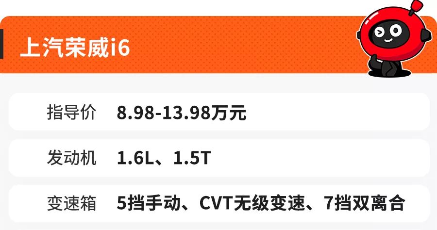 编辑观点:荣威i6 虽然算得上是目前上汽荣威旗下的旗舰轿车,但其实也只是一款轴距2715mm的紧凑型轿车,但品质对比同级车型还是有些优势的。作为一款国产的紧凑型轿车,i6的定价不算便宜,而且配备CVT或者双离合变速箱的版本还是需要去到10万元以上。设计方面,荣威i6视觉效果看起来比较修长,配合家族式倒梯形前格栅,整体给人感觉各方面比较平衡。动力方面,荣威i6的选择比较丰富,而其中1.5T+双离合的组合动力表现出色,整体符合其定位。