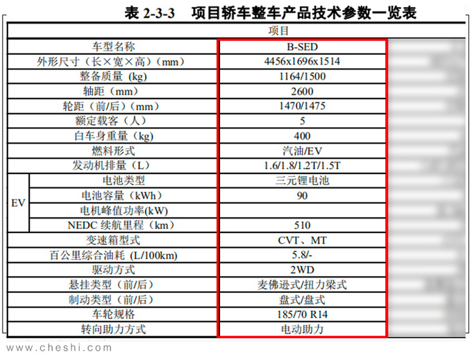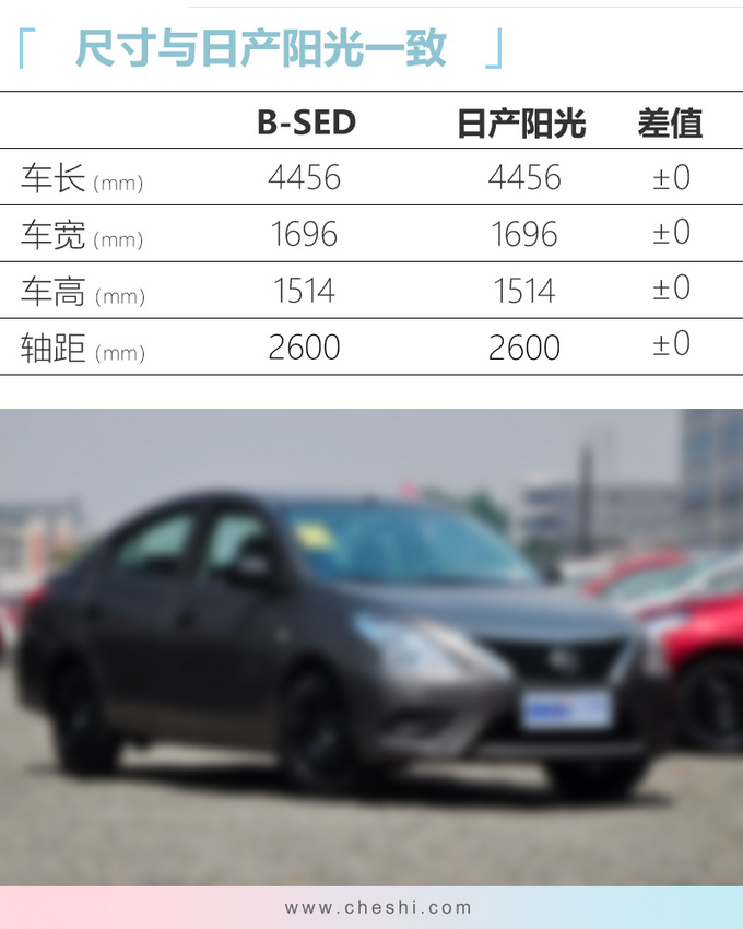 在环境影响评价中(其中各项参数均为先期提交版本,不代表最终产品),该车规划搭载1.6L、1.8L、1.2T、1.5T发动机,匹配CVT与MT变速箱,而2015款阳光仅搭载1.5L发动机,两车差异较大。并且B-SED还将上市纯电动版,电池容量90kWh,综合续航里程达到510km,悬架形式为前麦弗逊、后扭力梁式。