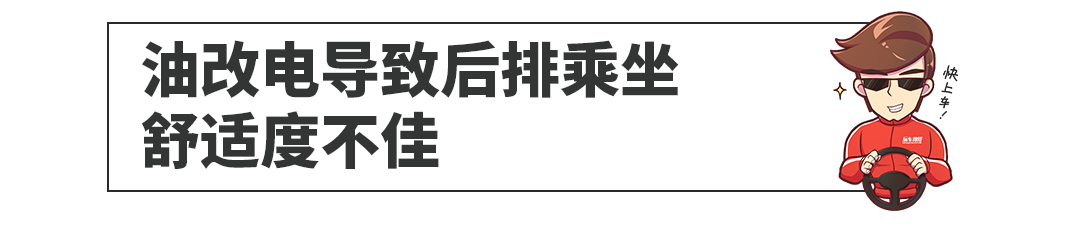 由于油改电的车型在设计上是从汽油车角度出发,所以很多东西设计得并不那么适合电动车使用,最典型的例子就是电池的摆放不合理,导致后排乘客坐姿奇葩,严重影响后排乘客的乘坐舒适度。