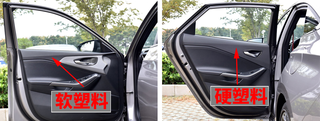 这种情况出现在部分车型中,有的厂商为了节约成本,将前后排门板等地方使用不一样材料,例如菲斯塔 (配置|询价),前排门板大面积使用软质材料包裹,而后排则使用硬塑料;硬塑料在使用过程中的舒适度比软质差不止一个档次。