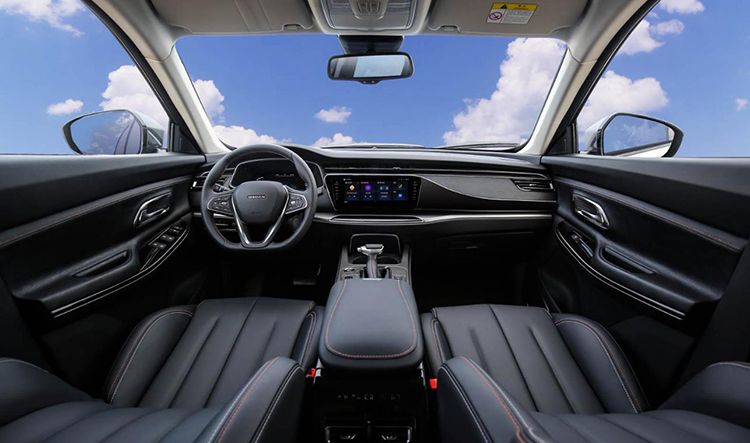 内饰部分,长安欧尚X7采用了新奢主义美学设计理念。新车内饰有深浅两种配色可供消费者选择,中控台大面积软包拼色搭配,银色饰条来装饰。整体内饰采用环抱式设计,前门板部分区域则由软性包裹。副仪表台以合金拉丝饰板点缀,造型简洁流畅。同时,新车还采用了大尺寸全景天窗的设计为后排提供了最大视角,使后排乘客不再压抑,并且还搭配了11寸悬浮式中控大屏,屏幕采用全触控操作的设计,豪华感与科技感满满。