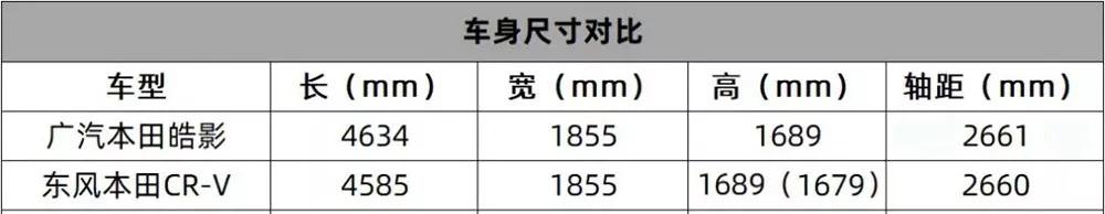 全新皓影的长宽高分别为4634*1855*1689mm,轴距为2661(2660)mm,定位是一款紧凑级的SUV车型。说到本田的紧凑级SUV,很难不联系到另一款SUV——东风本田的CR-V (配置|询价)。从数据上看,全新皓影虽说宽度、高度和轴距这三方面与CR-V出入不大,但在长度方面则长了将近50MM。