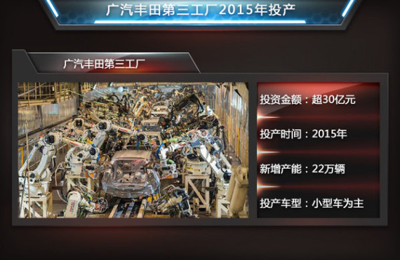 深化产品战略的同时,广汽丰田加速产能扩张。为满足未来中小型车战略解决产能吃紧问题,广汽丰田已经启动了第三工厂的建设。第三工厂位于南沙工厂附近,总投资超过30亿元人民币,投产后将新增22万辆年产能,到2015年总产能将提高至60万辆。第三工厂明年将有望建成投产,主要生产中小型车。综合而言,伴随产能的逐步提升加之新车型的投产,广汽丰田将为下一个十年更加快速的成长。(网通社 2014年10月10日 北京报道)