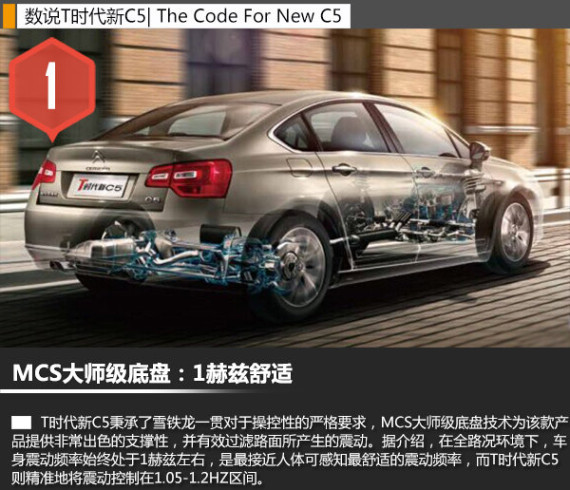 目前T时代新C5也秉承了雪铁龙精湛底盘工艺的特性,MCS大师级底盘为车辆提供了非常出色的支撑,让驾驶员在高速操控车辆的时候很有信心。另外根据介绍,在全路况情况下始终保持1赫兹的震动频率是车内乘客可感知到的最舒适震动频率,而T时代新C5则通过精准的底盘调教将震动有效控制在1.05-1.2赫兹左右。
