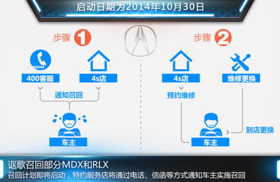 对于此次召回事件的相关信息,网通社以消费者的身份致电讴歌汽车客户服务中心官方400服务热线并进行咨询。对方表示:已收到厂商召回通知,召回计划将于2014年10月30日启动,讴歌汽车在华特约服务店将以电话、短信等方式通知车主实施召回。车主也可拨打官方客户服务热线,并提供车辆的车架号,以确认车辆是否涉及此次召回。