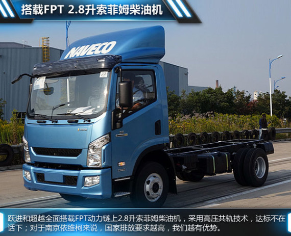 杨军虎说,2013年推出的跃进旗下“超越”新车型,不再是当年的低端轻卡,而是全面应用世界最先进的FPT(菲亚特动力公司)的发动机、变速箱、车桥构成的“动力链”,脱胎换骨,主打中高端轻卡市场。明年国家开始全面推行国4排放标准,对许多柴油车是一个难以跨越的大门槛,而小型柴油机是菲亚特领先全球的核心技术,跃进和超越全面搭载FPT动力链上2.8升索菲姆柴油机,采用高压共轨技术,达标不在话下;今后依维柯轻客,将采用新一代柴油机F1A和F1C,可以达到欧6排放标准。对于南京依维柯来说,国家排放要求越高,我们越有优势。