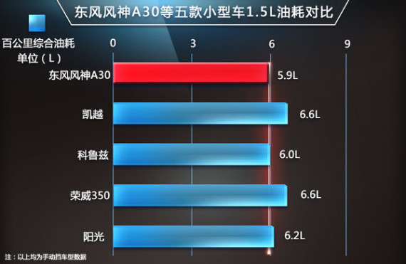 在动力性能相差无几的情况下,我们就要将目光转到油耗对比上了。据国家工信部公布的数据显示,东风风神A30 1.5L手动挡车型的百公里综合油耗仅为5.9L,购车能获国家最新节能补贴3000元。不仅顺利实现破“6”大关,同时也为其他几款合资或自主品牌的同级别车型树立了新的标杆。相信凭借着自身超高的燃油经济性,A30在未来可以在强手林立的国内A级车市场中占有一席之地。