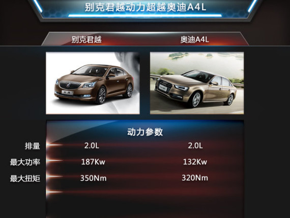 经过对比不难看出,其中别克新君越在各个方面均要优于豪华品牌奥迪A4L车型,同时新君越打破了中高级车型的界限,为追求驾乘中高端车型的消费者提供了全新的选择。