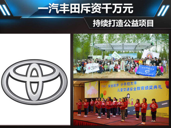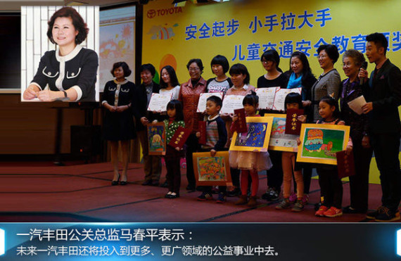 一汽丰田十分注重公益事业,通过十余年的探索,在安全、环保、育人等几个领域积累了比较丰富的经验。其中儿童作为一个国家未来的希望,更是一汽丰田选择公益项目的发展重点。从2008年开始,一汽丰田就开始举办儿童交通安全方面的公益项目,一汽丰田公关总监马春平女士在接受网通社采访时表示:儿童是整个社会的重点,交通安全教育从孩子抓起不仅可以让他们自己学到交通知识,同时也能让孩子感染整个家庭乃至社会对交通安全的一个意识,从而达到交通事故零伤亡的愿景。