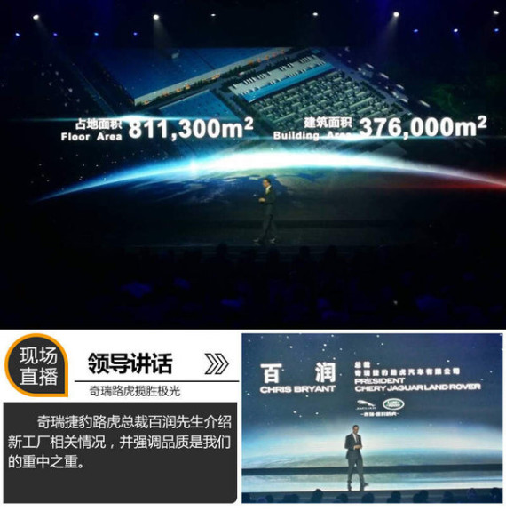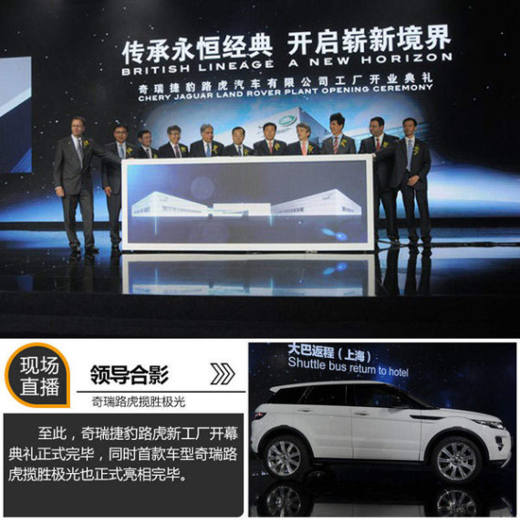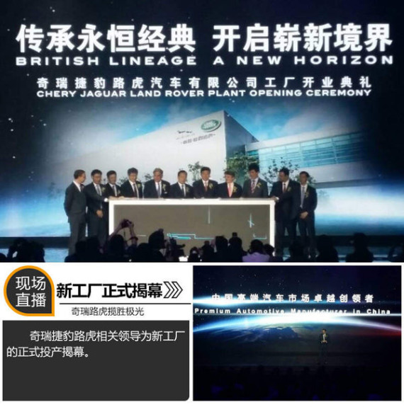 自奇瑞与捷豹路虎在2012年11月联姻成功后,即开启了捷豹路虎在华投产的序幕。随后双方商定将工厂设立在江苏常熟,该工厂将投产捷豹品牌、路虎品牌、合资自主品牌车型及配套发动机项目。时隔两年,新工厂终于竣工,即将揭幕。今日网通社受邀参加奇瑞捷豹路虎工厂开幕典礼,见证捷豹捷豹路虎在华“首秀”。