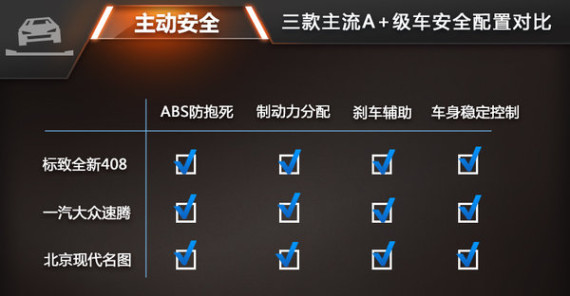 配置方面,三款车均配备了当前主流的配置。以三款顶配车型来看,车辆配备了定速巡航、倒车影像、座椅加热、后排出风口等。这其中全新408采用了LED大灯,并配以自动泊车、发动机启停技术以及并线辅助等科技配置,使得该车较另外两款车型更具竞争力。