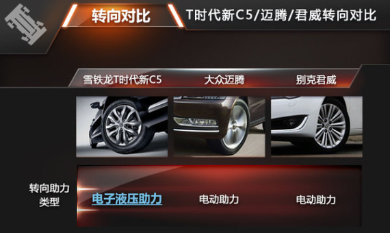 在动力方面,T时代新C5作为东风雪铁龙“T+STT核芯动力”首发旗舰车型,其首次搭载1.6THP涡轮增压直喷发动机。这款发动机连续8年蝉联“国际年度发动机”大奖,应用众多行业先进的发动机技术。其最大的特点是,车辆在1000转时涡轮便介入工作,1400转可达到245牛米的峰值扭矩。相比大众迈腾所搭载的1.8T与君威的1.6T引擎来说,该款发动机在动力基本持平的基础上,拥有动力输出更加迅速,涡轮增压持久力强的特点。