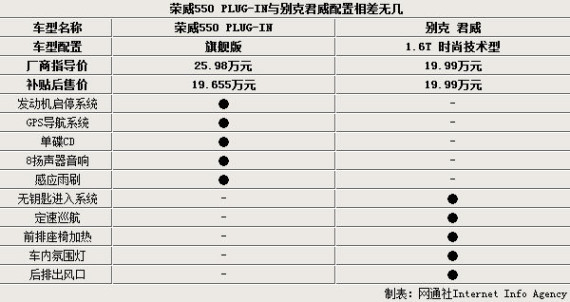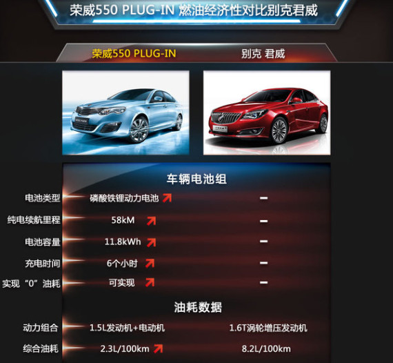 1.荣威550 PLUG-IN与君威1.6T车型价位相近