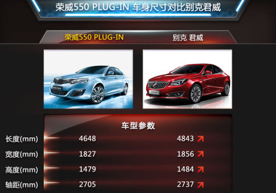 2.君威整车尺寸优于荣威550 PLUG-IN