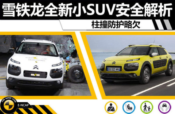 C4 Cactus是雪铁龙全新打造的一款小型SUV,新车的外观设计的颇具未来概念,内饰具有很强的科技感,综合性能优秀。值得一提的是,C4 Cactus车身侧面及尾部加入了官方称之为Airbump技术的柔软材料,可抵御轻微剐蹭。这款全新小型SUV有望在11月份举办的2014广州车展进行国内首发,并随后引入销售。在安全方面,C4 Cactus近日在美国进行了碰撞测试,网通社发现此车在正面和侧面撞击中均能为车内乘员提供足够的防护,但在严苛的侧面柱撞测试中,车内模拟驾驶员假人的胸部有受伤风险。