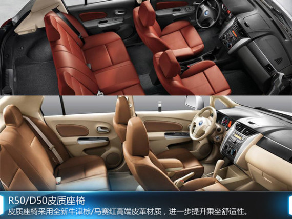如果说倒车雷达促进了安全性的提升,那么启辰R50、D50新增的皮质座椅对于舒适性的提升也十分重要。R50、D50的皮质座椅采用顶级真皮沙发的设计与制造工艺,特选全新牛津棕/马赛红高端皮革材质,不仅提升了车内质感,同时也进一步提升乘坐舒适性。