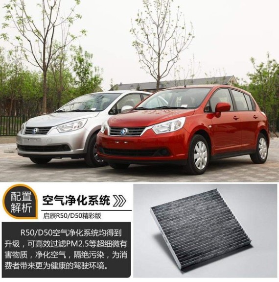 在安全性性以及舒适性均得以提升之外,启辰R50、D50还针对目前由于空气污染导致的雾霾升级了空气净化系统,该系统可高效过滤PM2.5等超细微有害物质,净化空气,隔绝污染,为消费者带来更为健康的驾驶环境。这对于有老人、小孩陪伴的一家人驾车出行时,尤其在秋冬季节,提供了更为干净的车内空气。