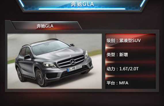 此前奔驰已在海外正式发布了旗下首款紧凑型SUV产品GLA,其也是MFA前驱平台生产的第一款车型。而该款车型将于今日正式在华上市销售,预计售价29万元起。在动力上,GLA将搭载1.6T和2.0T两款涡轮增压发动机供消费者选择。