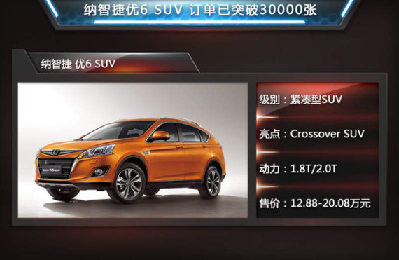 早在上市初期,纳智捷 优6 SUV就确定了“二手车保值率”这一项目。根据其规定,同时只要维修的车辆超过3天,每天就可提供200元的代步金;另外在售后服务上,在原有三年十万公里的保修政策基础之上,又增加了六大系统六年不限里程保修,这又属于是业内第一次。依靠自身出众的品质和定位准确的差异化营销方式,纳智捷 优6 SUV确保了销量上的高歌猛进。