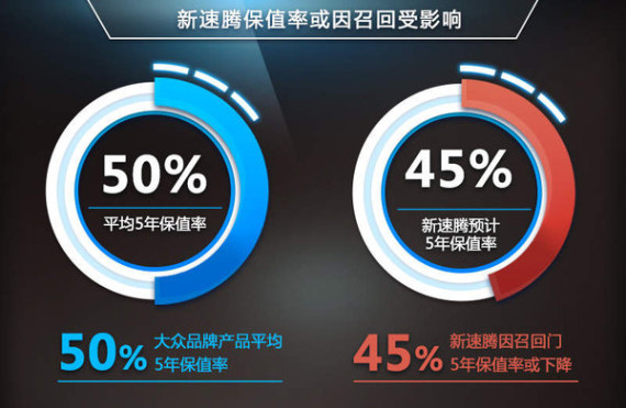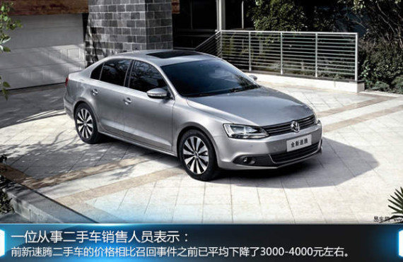 新速腾 (配置|询价)最近在中国市场的召回事件,引起了的众多车主和对于该款产品深感感兴趣的潜在车主的广泛关注。据悉,此次一汽大众启动召回的新速腾,涉及从2011年5月-2014年5月生产的563,605辆产品。而随着大众对召回之事的回应和各地车主的维权活动,让此次事件持续升温。而网通社也从国内二手车市场了解到,受此次召回事件的影响,新速腾的二手车价格已出现明显波动。一般大众旗下的产品5年的保值率在50%左右,而根据目前的情况来看,预计新速腾的保值率将降至45%左右(降幅达10%)。