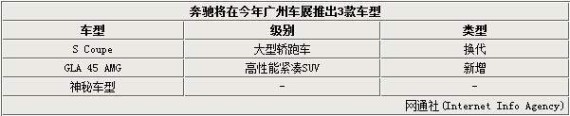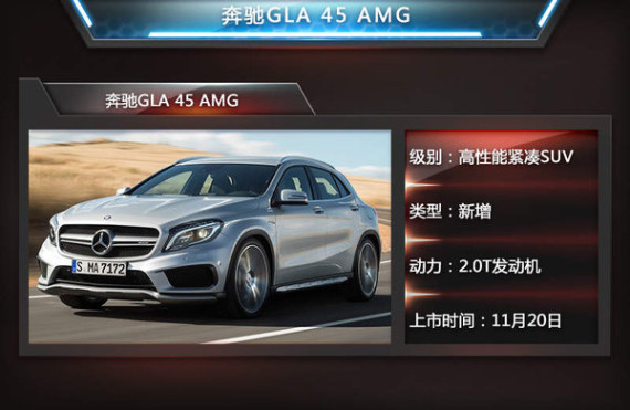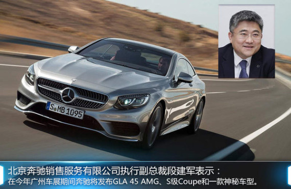 此前奔驰GLA正式在华上市,并公布了28.98-39.8万元的厂商指导价,而在今年该品牌还将有多款新车陆续进入中国市场。对此北京梅赛德斯-奔驰销售服务有限公司销售与市场营销执行副总裁段建军先生表示:在今年11月举办的广州车展上,奔驰还将带来GLA 45 AMG、S级Coupe以及一款神秘车型。而关于上述三款车型的信息,奔驰内部知情人士向网通社表示:广州车展上GLA 45 AMG和S级Coupe将公布在华的官方指导价格。