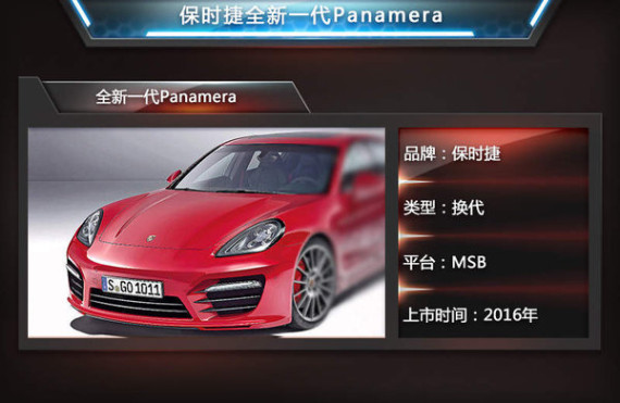 保时捷全新一代Panamera有望与新一代宾利欧陆GT采用相同的MSB平台打造。该模块化平台技术是大众集团专为大型轿跑车型开发的前置/中置+后驱/四驱平台,由于车身多采用碳纤维级铝合金等材质,为此基于这一平台打造的车型还拥有轻量化的特性。因此未来全新Panamera应用这一技术后,将使得其整车重量得到一定程度上的下降。(网通社 2014年10月30日 德国法兰克福报道)