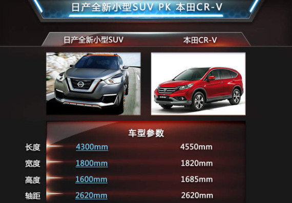 Kicks定位于小型SUV,其长宽高分别为4300/1800/1600mm,轴距达到了2620mm,与紧凑级SUV本田CR-V拥有相同的轴距。换句话说,日产全新小型SUV与比其高一级别的本田CR-V拥有相同的后排乘坐空间。